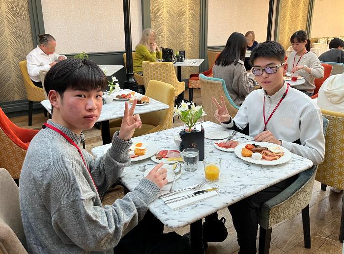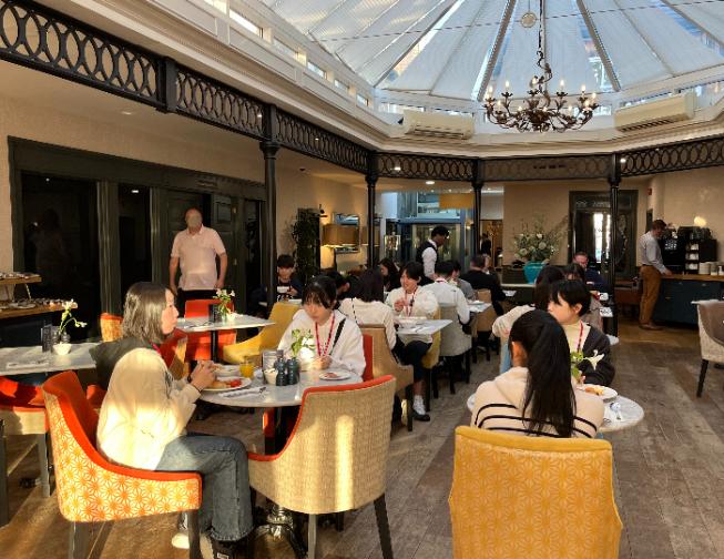 イギリスグローバルリーダー育成研修⑤ 2026 年 3 月 21 日 最終更新日時 : 2026 年 3 月 21 日 Group Crest 今日のMad Scientists’s Cambridge Tourで学んだことを活かしてグループのcrest(紋章)を考えました。 Dinner 夜ご飯はステーキ。メンターと話をしながらの夕食。 朝ごはん 皆、今日も元気に1日をスタートしました。美味しくEnglish breakfast をいただきました。