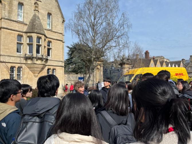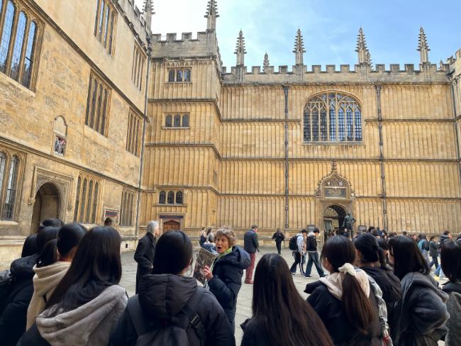 イギリスグローバルリーダー育成研修⑦ 2026 年 3 月 21 日 最終更新日時 : 2026 年 3 月 21 日 Oxford University Tour Oxfordに向けて出発。 Oxfordの街を、ツアーガイドのLucyさんとRebeccaさんに説明をしてもらいながら散策。その後は買い物やAshmolean Museumの見学など思い思いに楽しみました。 Greek Dinner 夕食はギリシャ料理。オクスフォードからのバスが大渋滞で到着が遅れたせいで、お店ではなくテイクアウェイになりましたが、ホテルで美味しくいただきました。 Happy Birthday 今日の最後は、昨日誕生日だったSomaさんを皆で歌ってお祝いしました。
