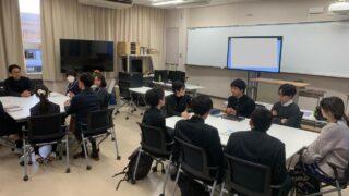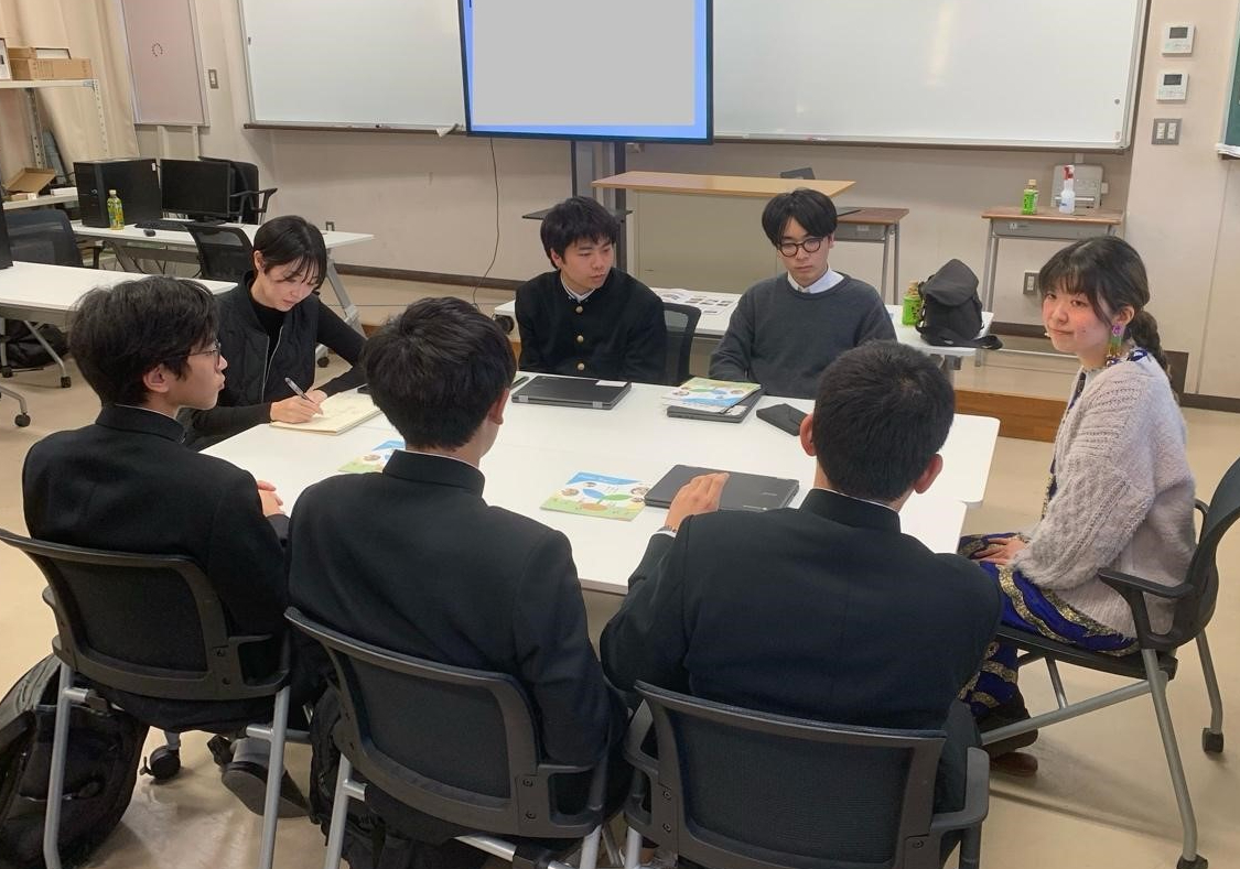 希望生徒10名が参加しました。2グループに分かれ、初めに「言語:言語とコミュニケーション」「社会:国家と制度」「個人:多文化共生とアイデンティティ」というキーワードの中から1つを出発点として、自由にディスカッションしていきました。予定の1時間を超えてゲストと語り合う生徒もいました。参加生徒からは、「深く議論できた」「思い切って主張したら視野が広がった」「世界に目を向けるきっかけになった」などの感想が聞かれました。両グループとも活発な雰囲気で、ゲストのお二人からは「生徒の目がキラキラしていて、元気をもらった。彼らの将来が楽しみ。」という言葉をいただきました。