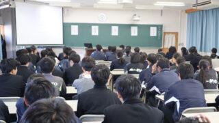 令和7年1月11日(土) 学業にも部活動にも力を注いでいた卒業生を講師としてお招きし、文化部・運動部合同進路講演会を行いました。現在部活動をしている在校生230名と保護者37名が参加し、2会場に分かれて熱心に聴講しました。