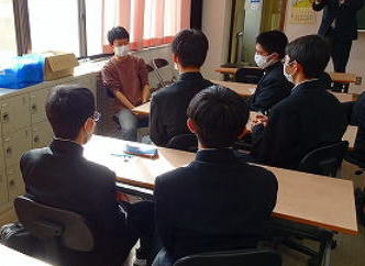 東京大学、京都大学をはじめとする難関大学や医学部を志望している1年生が、本校卒業生を囲んで、学問や研究の面白さ、大学の魅力等について話を聞くことができる、貴重な時間でした。講師として来校してくださった卒業生は、自分自身が高校生だったころの部活動・学校行事の話や、勉強方法、大学・学部・学科の志望動機、いまの大学生活についてなど、具体的な体験談を交え、力強いエールを送ってくださいました。